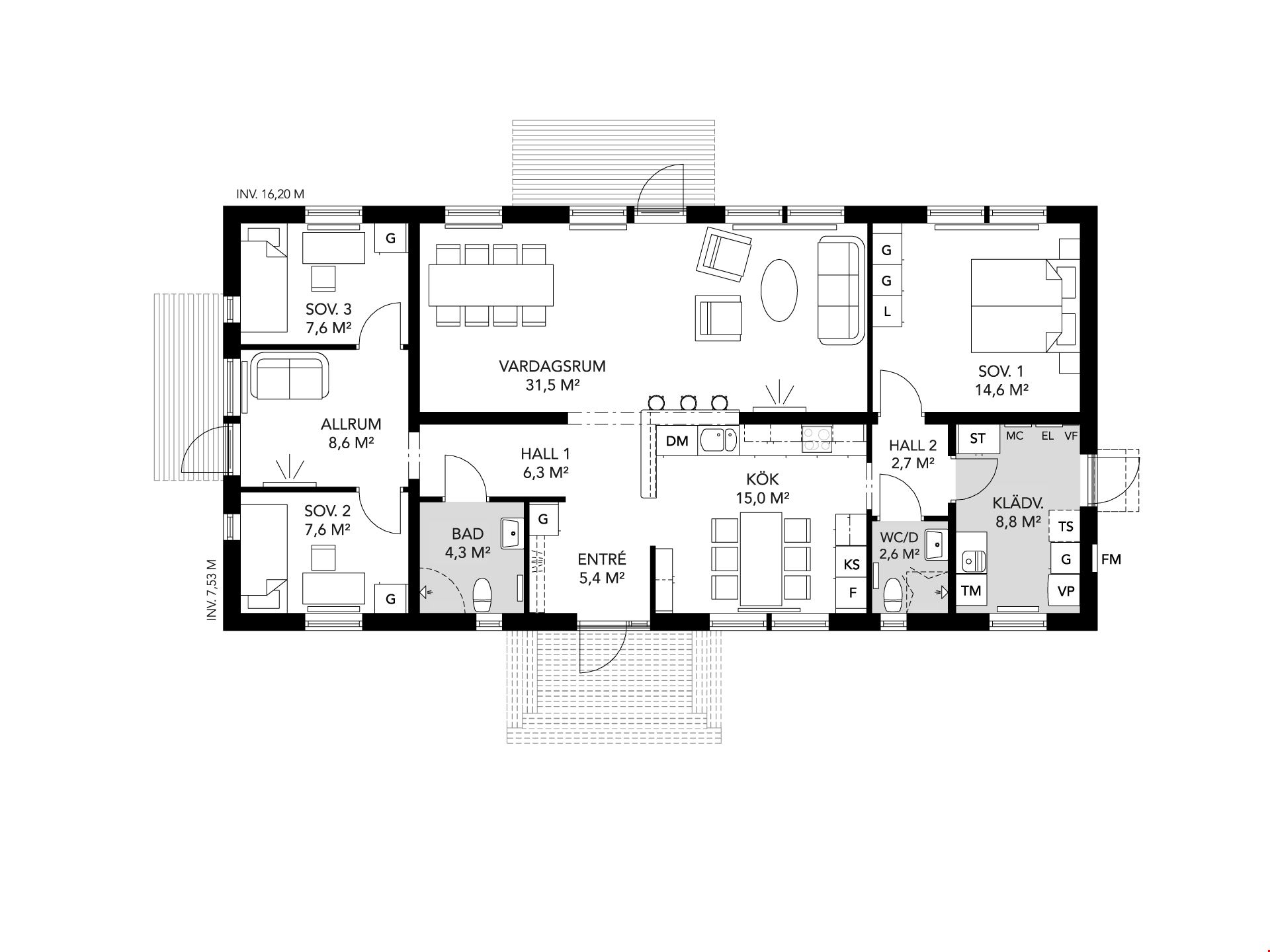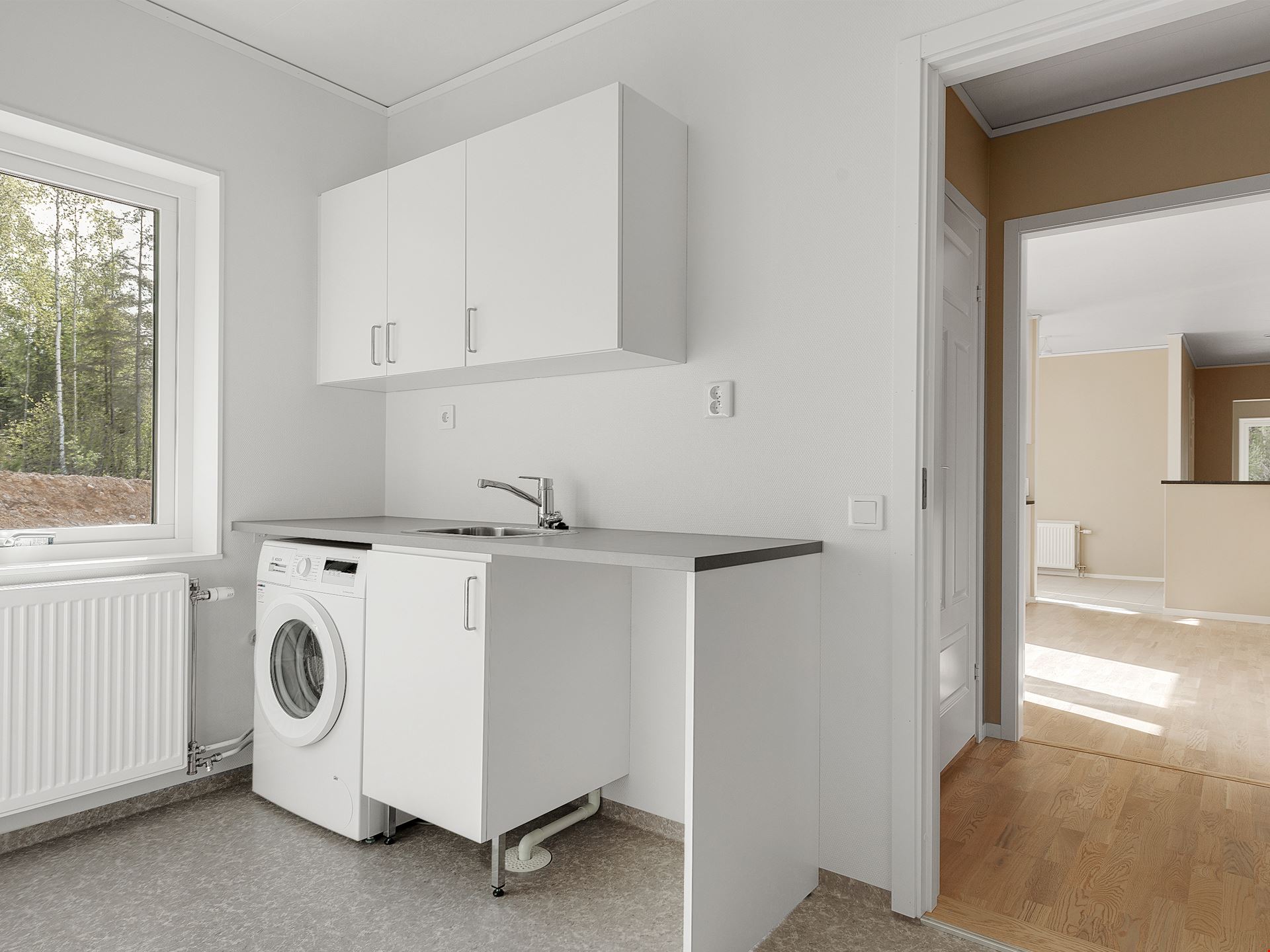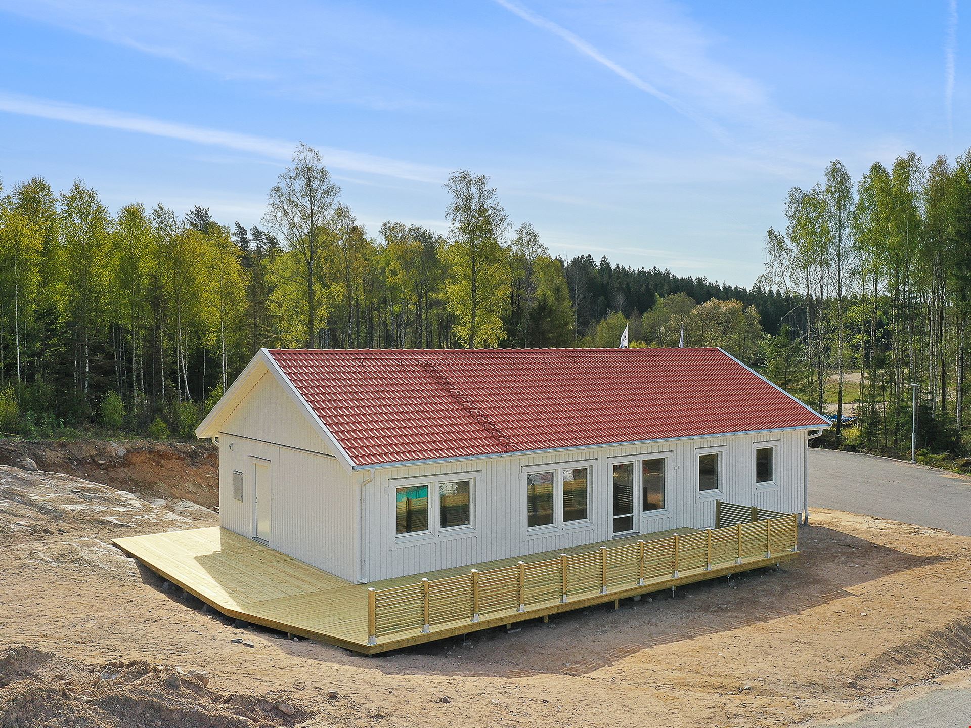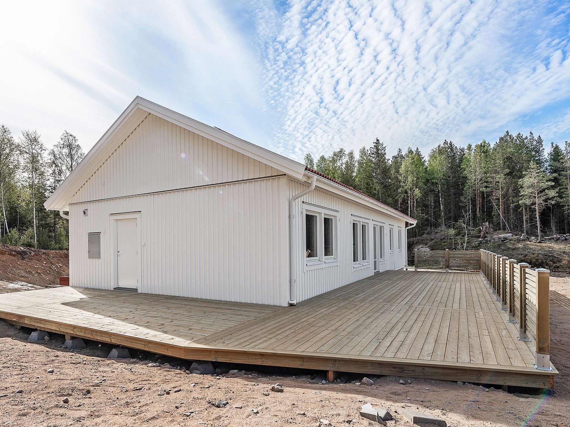 Välkommen till denna villa om 122 välplanerade kvadratmeter. Huset består av 5 rum och kök med egen barn- och vuxenavdelning. Här får du ett hus med tre sovrum, ett stort vardagsrum med plats för både mat- och soffgrupp, ett litet allrum till barnen, två badrum och ett väldisponerat kök med bardisk i direkt anslutning till vardagsrummet. Köket kommer från Vedum och är utrustat med vårt så kallade "lyxkök". Här får du ett kök med höga överskåp, dämpade lådor, mjukstängande luckor, högskåp för inbyggd ugn och micro, rostfria vitvaror, samt rostfri frihängande fläkt. Det stora badrummet är inrett med kakel och klinker, duschvägg, handukstork och svart kommod.