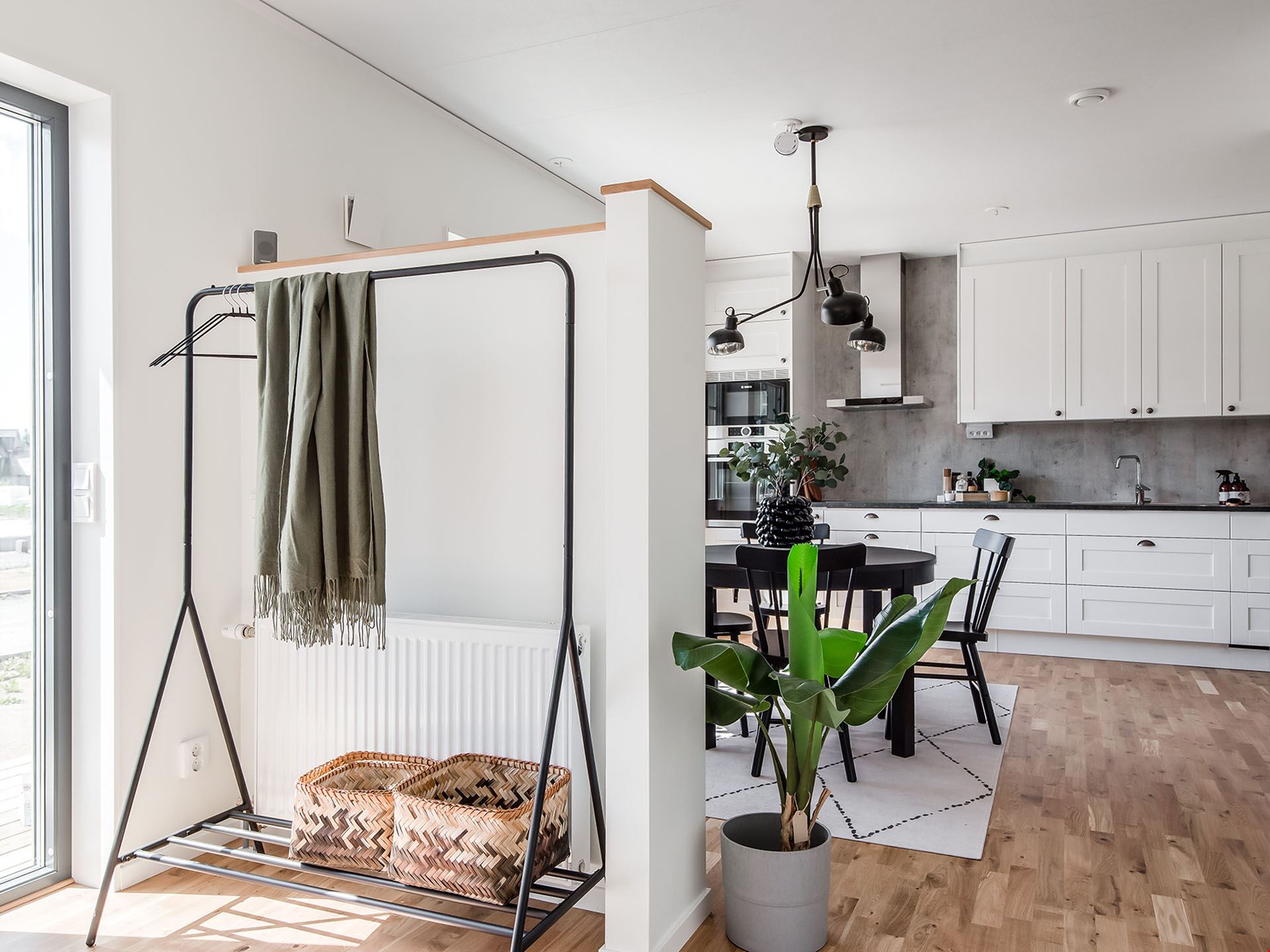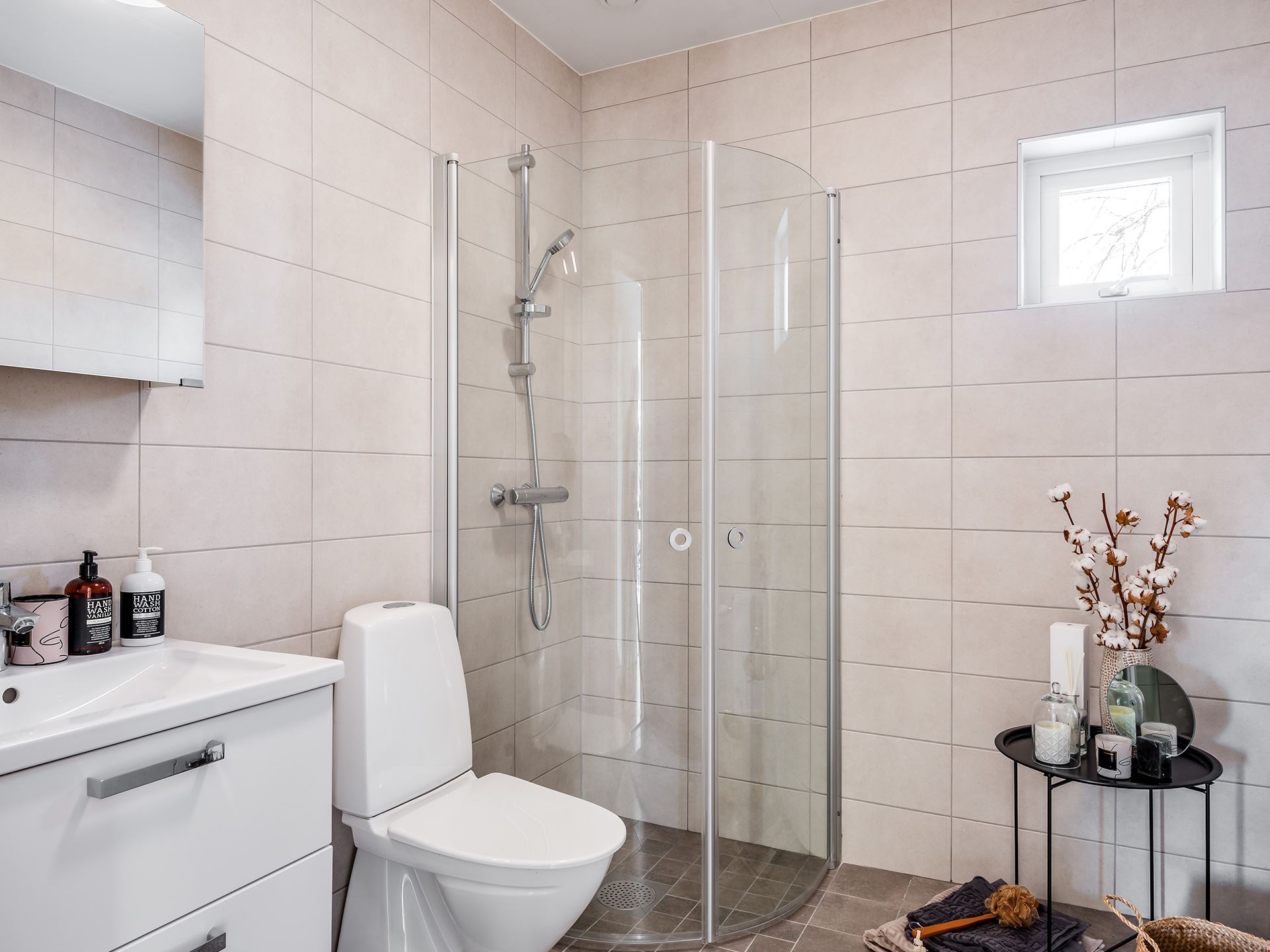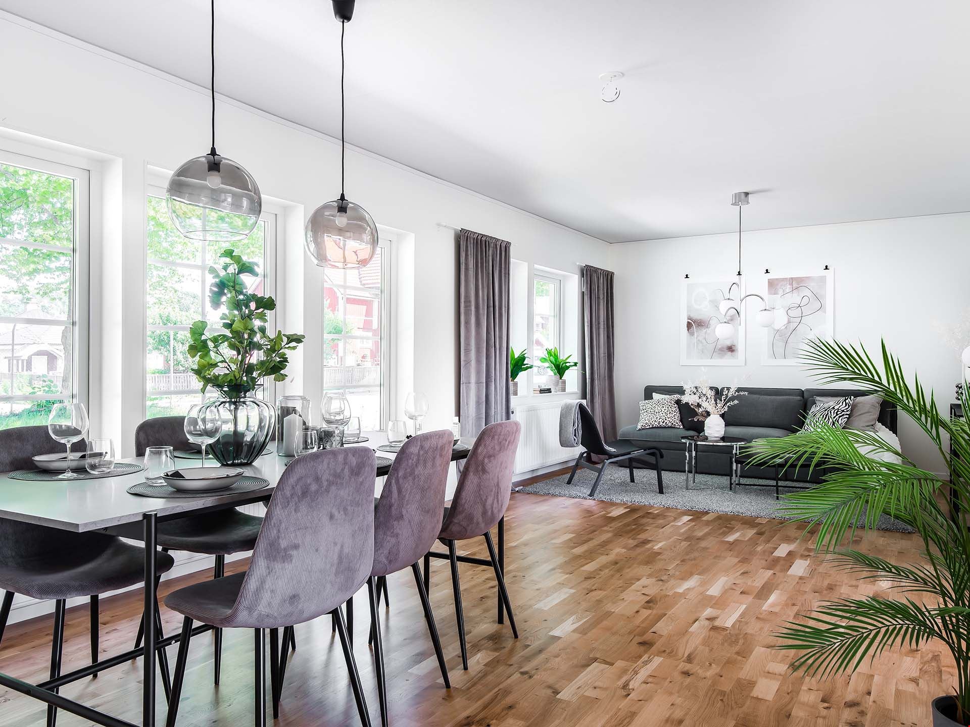 Villa Näsby är ett stort hus i litet format. Huset fördelar sig på 95 m² och består av 3 rum och kök. Mittskeppet i huset utgör samvaroytor, den avskärmade men öppna entrén ger ett härligt välkomnande och möjlighet till en extra förvaring i nischen. I Husets ena ände ligger de två sovrummen samlade intill de kaklade badrummet med duschvägg och kommod. Köket kommer från Vedum och är utrustat med vårt så kallade "lyxkök". Här får du ett kök med höga överskåp, dämpade lådor, mjukstängande luckor, högskåp för inbyggd ugn och micro, rostfria vitvaror, samt rostfri frihängande fläkt. Köket har en tidlös stil med vita spegelluckor, handtag i matt stål och mörk bänksskiva.
