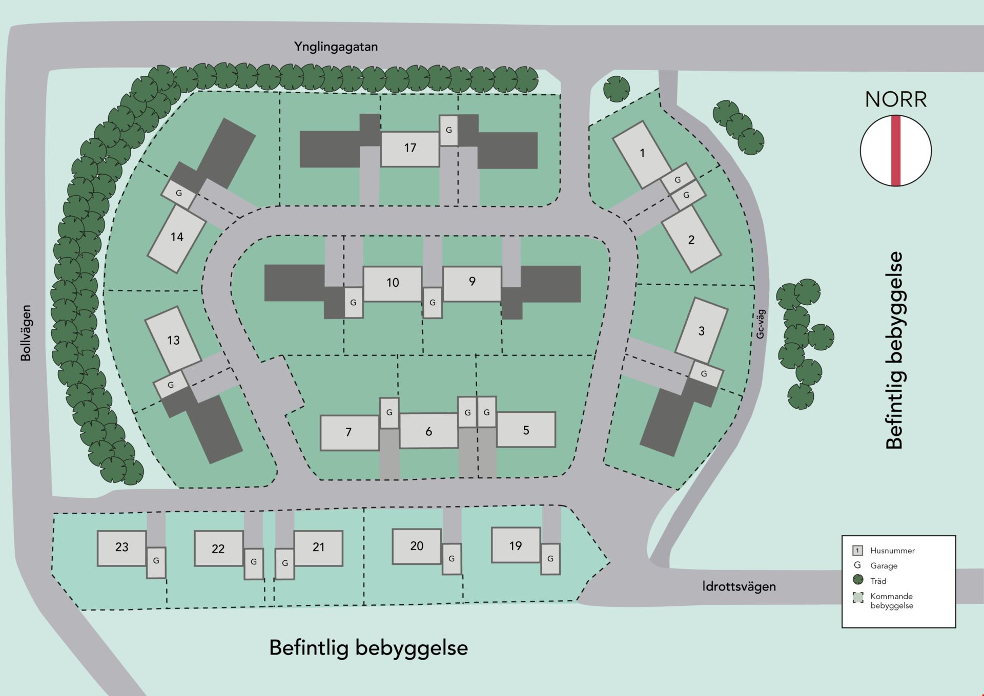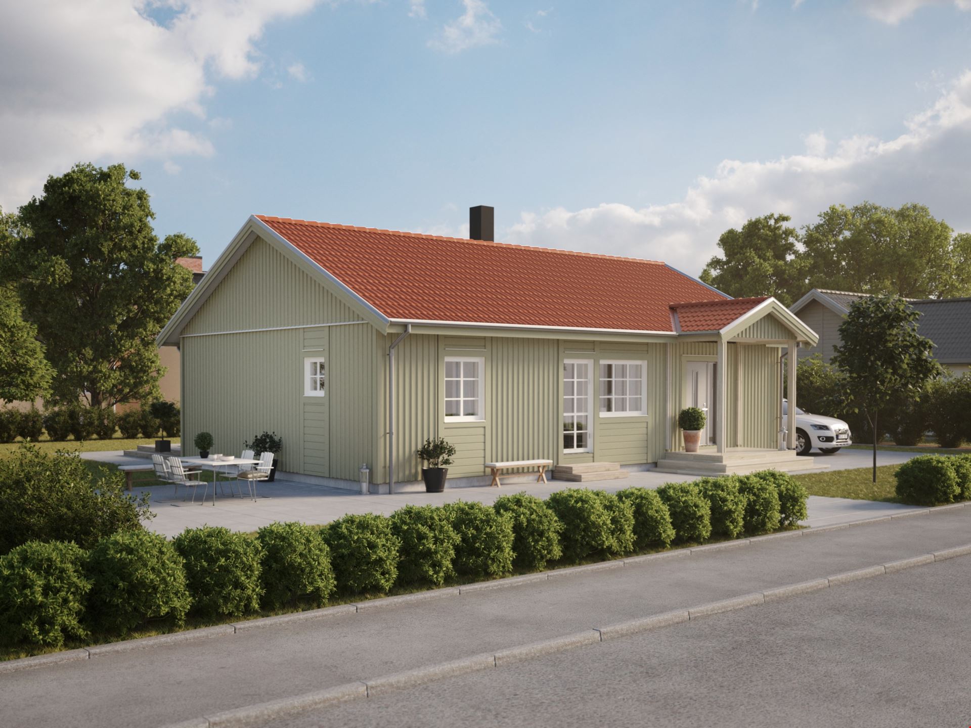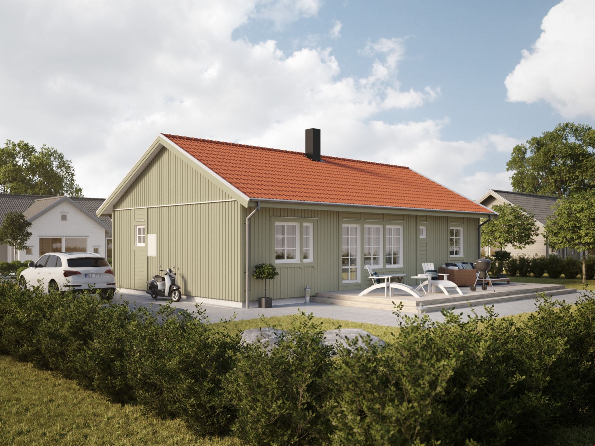 Notera att bilderna är en illustration, t.ex. ingår inte häckar, altan och eldstad.