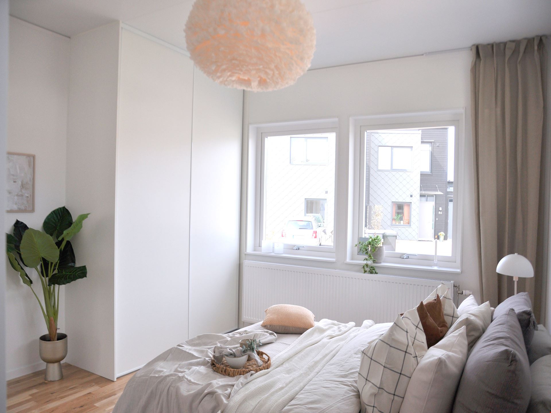Övervåningen är inredd med klimatskal. Det innebär att det mest utmanande delen av jobbet med övervåningen, nämligen att lufttäta, isolera och glespanela redan är gjort. Vi har också satt in radiatorer som håller värmen – och gör att du kan räkna med boytan på övervåningen i energiberäkningen redan från början. Ett bra val både för dig och miljön.