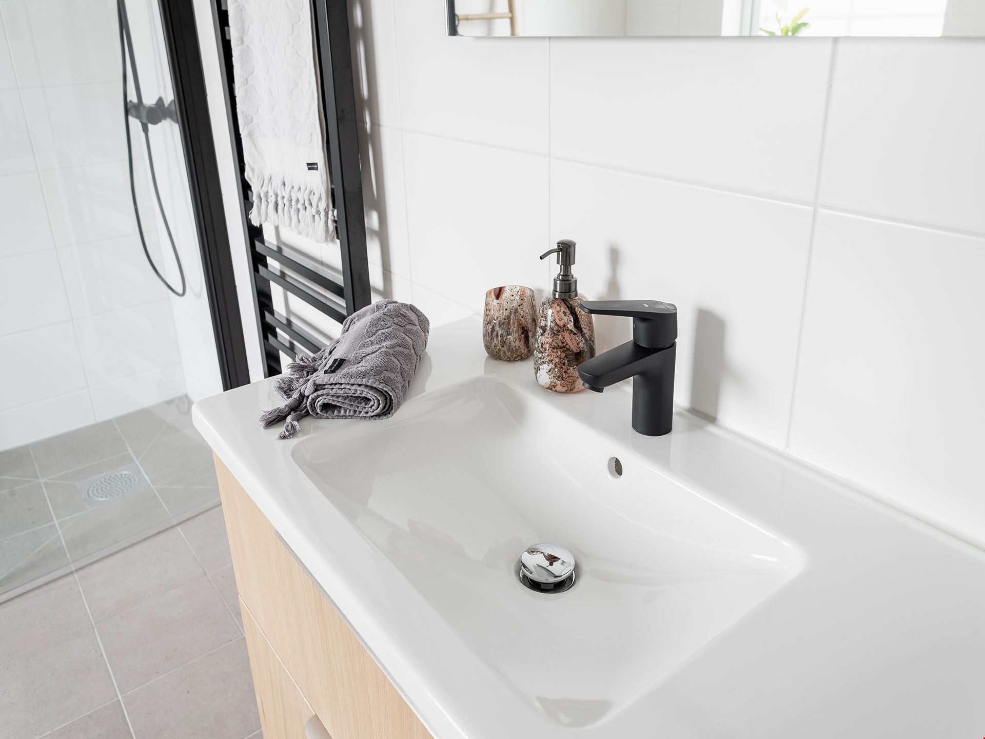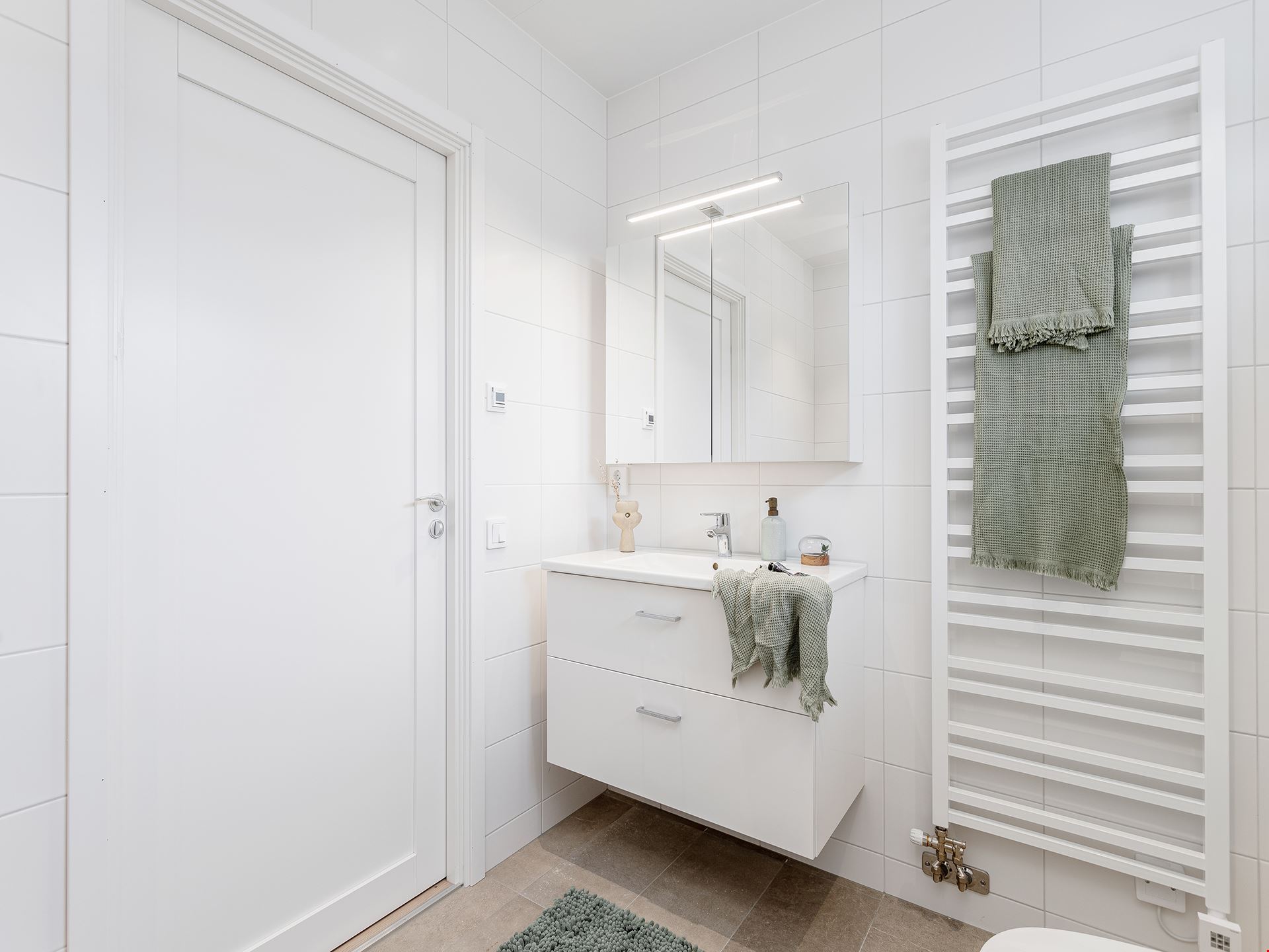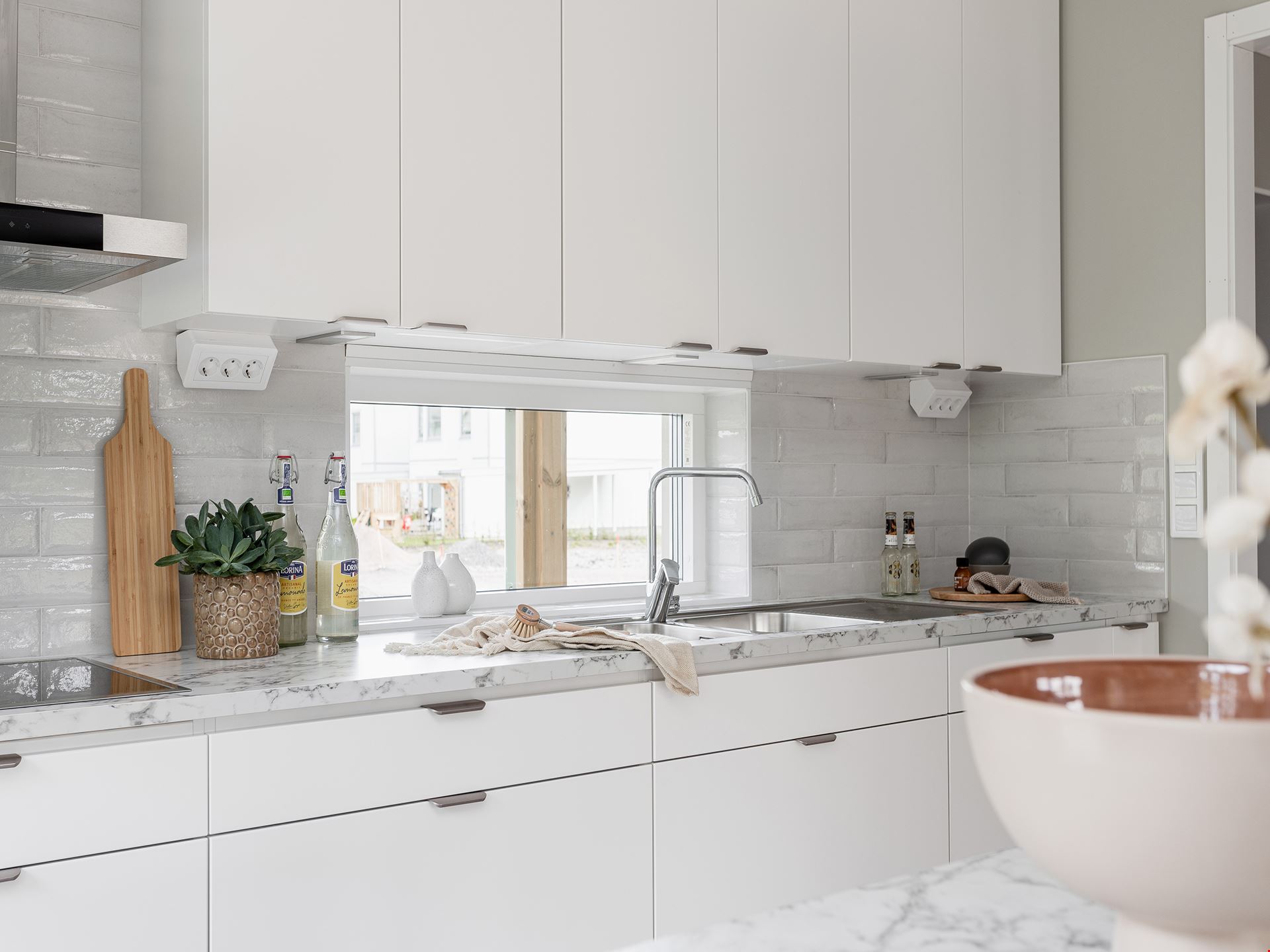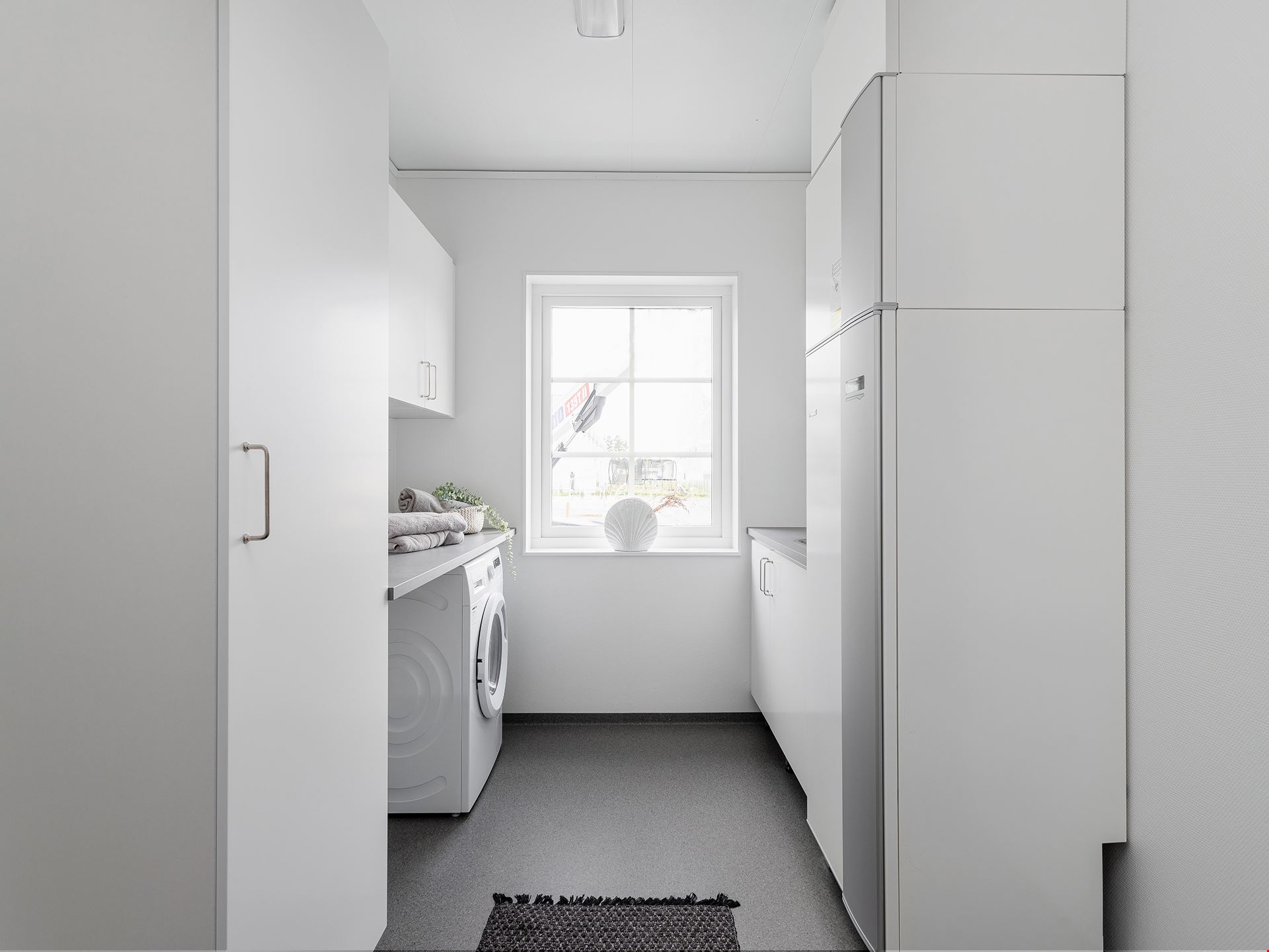 Här behöver du inte krångla med mängder av tillval. Vi har vi valt vårt lyxigaste kök från Vedum, med höga överskåp, dämpade lådor, mjukstängande luckor, inbyggd ugn och mikro i högskåp, integrerad diskmaskin, rostfria vitvaror och vägghängd fläkt. Alla vitvaror kommer från Bosch. Badrummen bjuder på kakel och klinker med komfortgolvvärme, inredning från Vedum och en stilren duschhörna – och i tvättstugan väntar både tvättmaskin och torktumlare på att ta hand om din tvätt.