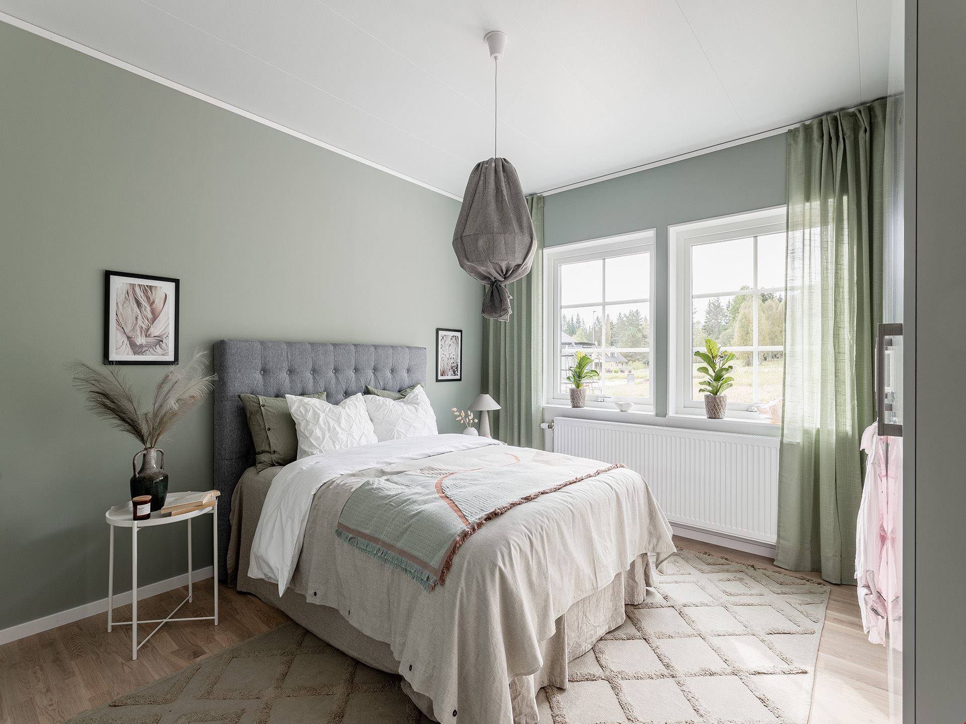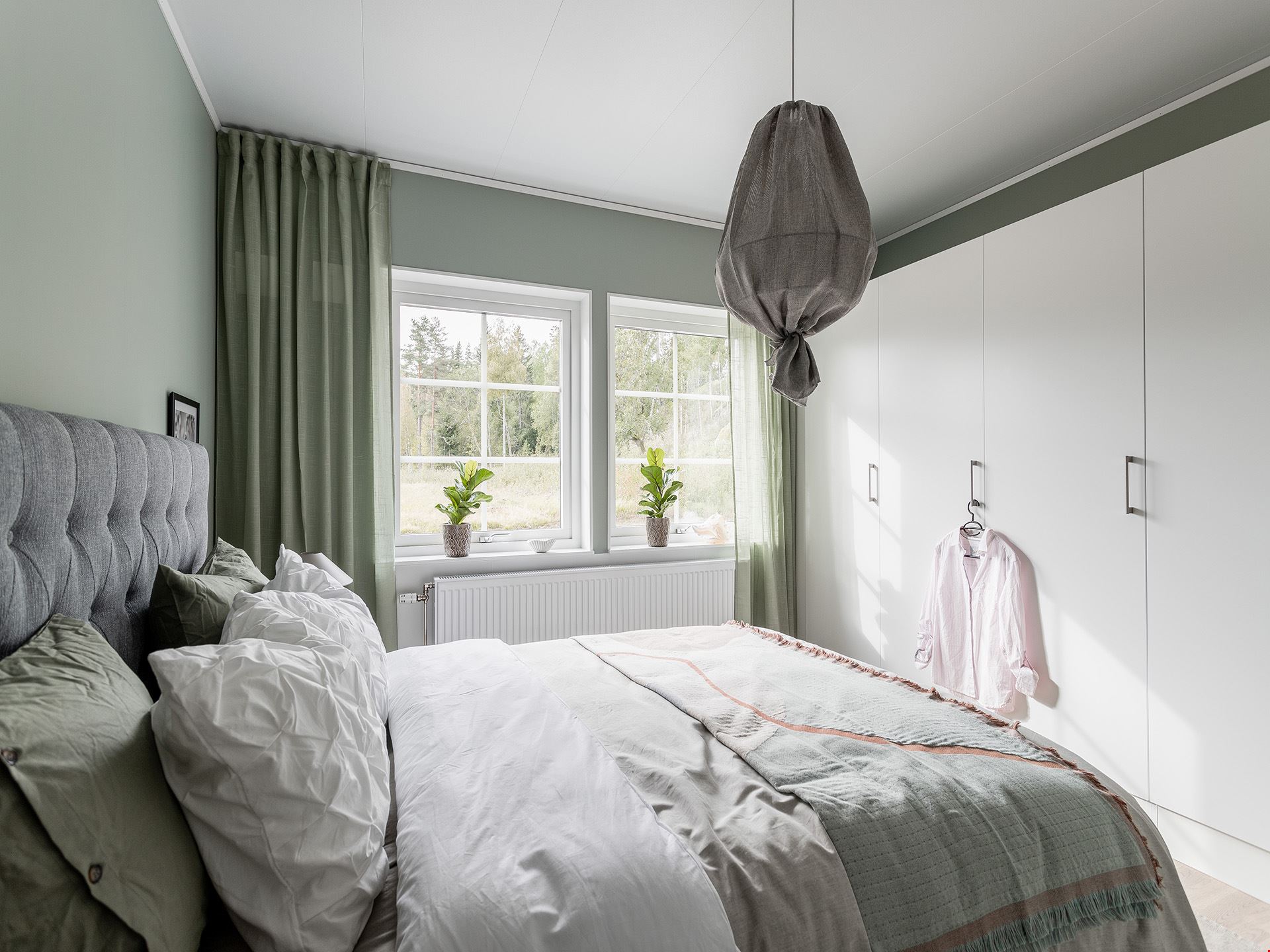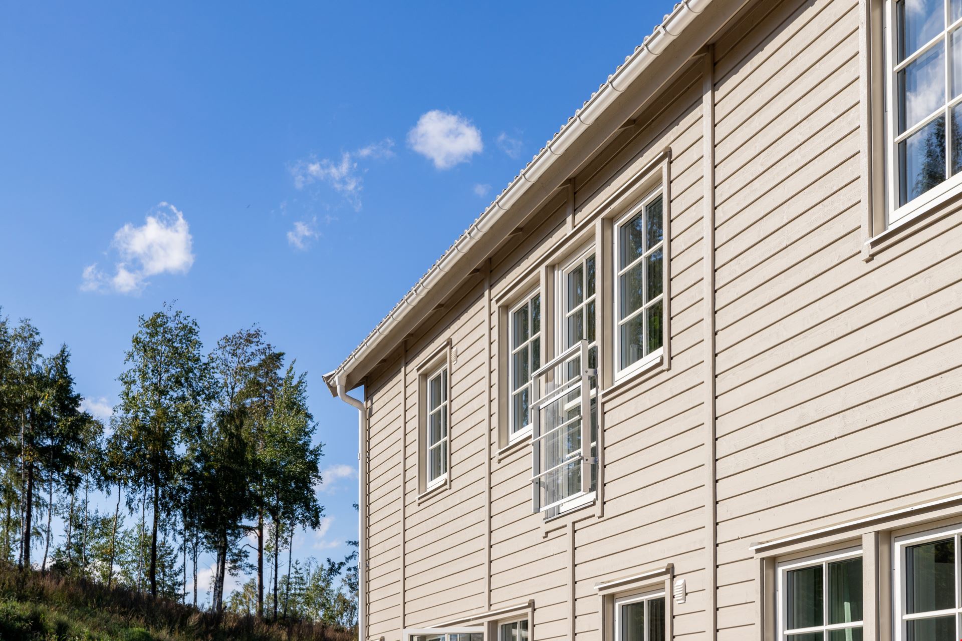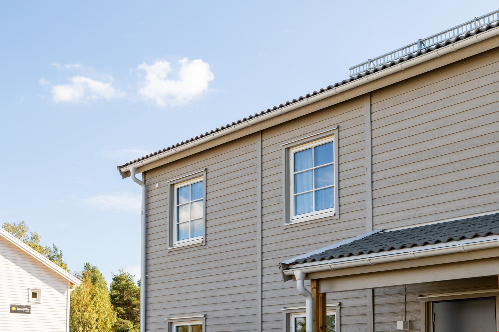 Villa Huskvarna är en av våra mest populära husmodeller. Här får det liggande panel och mellangrått tak. Insidan bjuder på en riktigt bra planlösning, genomgående hög standard och stilren inredning med ljusa ekparkettgolv samt beigea och krämvita tapeter.