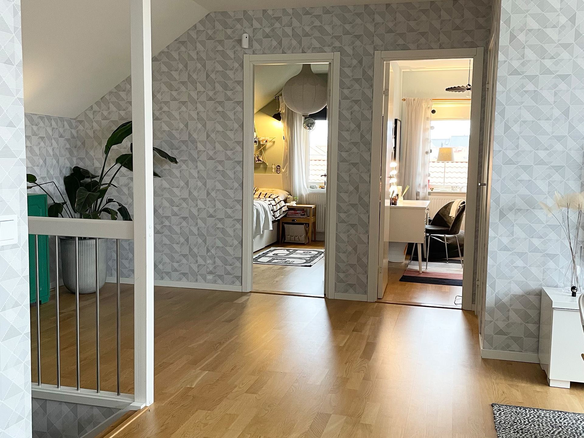 Villa Eksjö är ett 1,5-planshus med förhöjt väggliv. Husets entreplan har en modern, öppen planlösning mellan vardagsrum och kök. Det skapar en ljus och luftig miljö på ca 37 kvadratmeter. I husets andra halva ligger sovrummen samlade nära både badrum och klädvård.