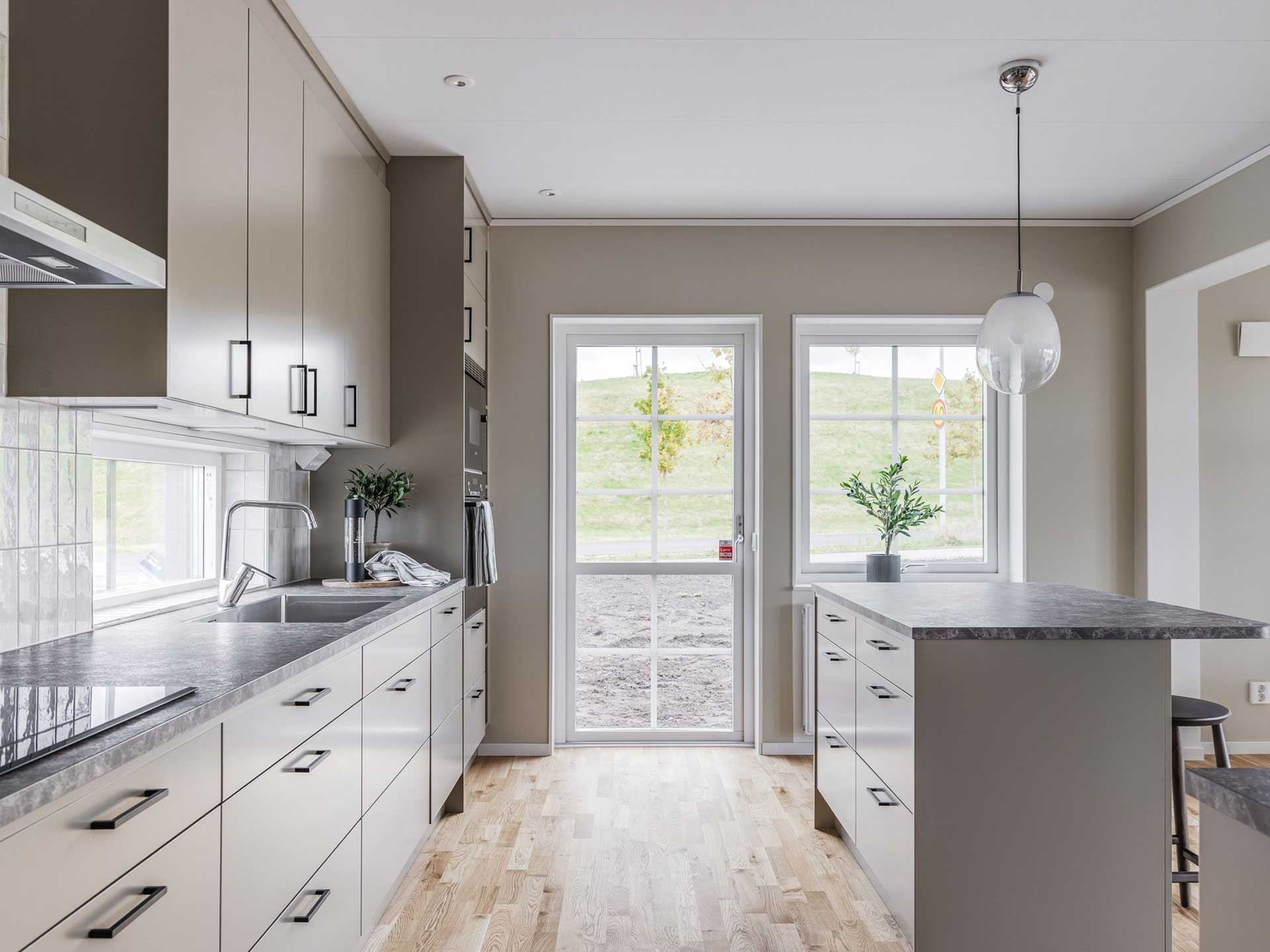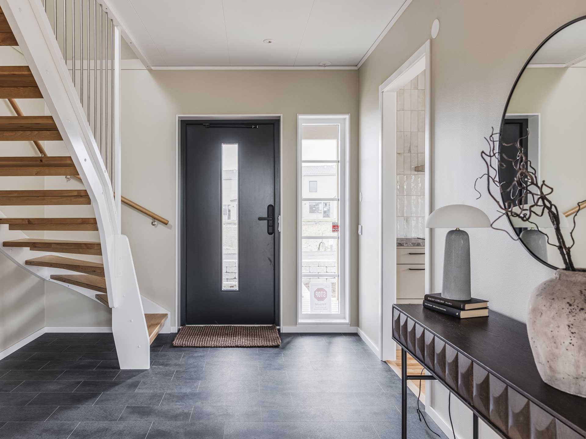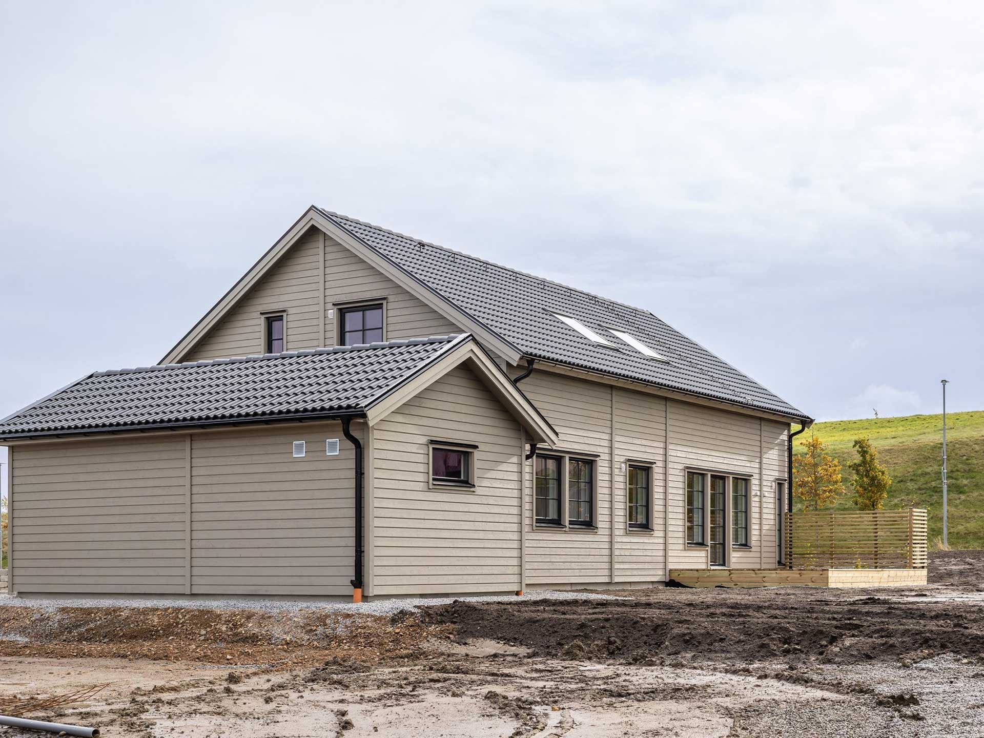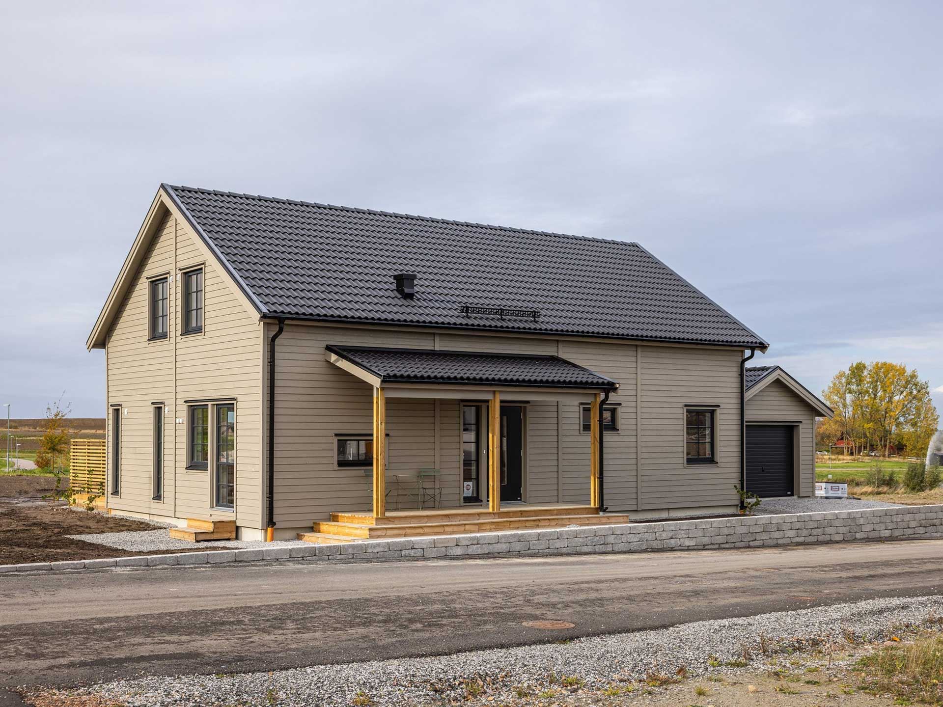 Huset du får kliva in i är Villa Eksjö – en riktig favorit bland våra husmodeller. Med sin eleganta arkitektur och sitt förhöjda väggliv kombinerar det rymd, mys och smart funktion. På entrévåningen väntar en ljus och öppen planlösning där kök och vardagsrum smälter samman, ett sovrum, badrum och ett praktiskt klädvårdsrum med egen entré.