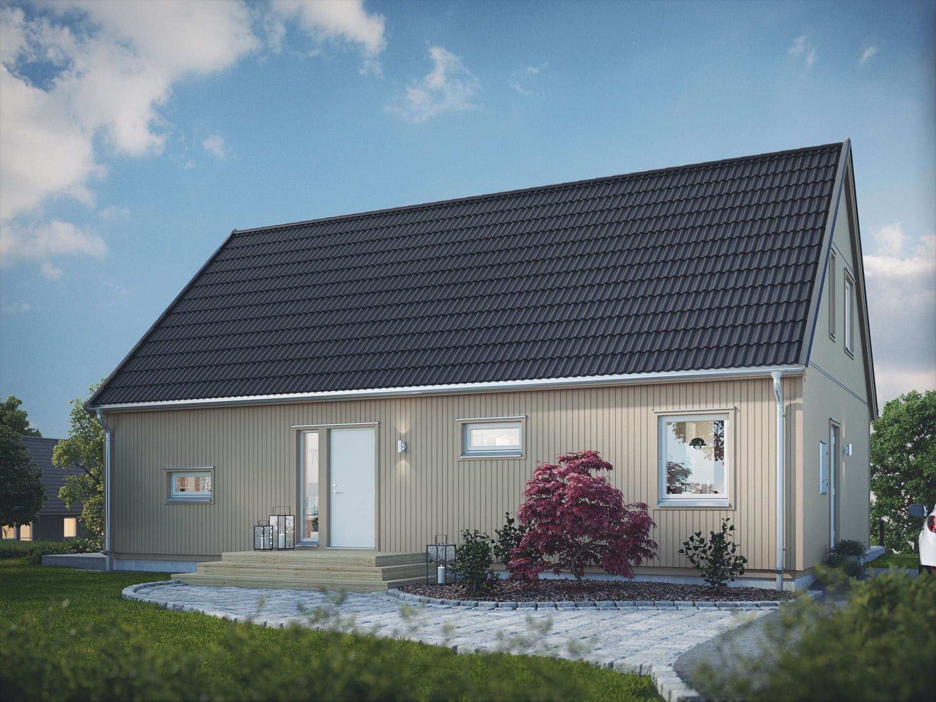 Huset i Mariestad har fått vår exteriöra stil Nova, som med sin funkispanel och korta takfot ger Villa Kalmar ett samtida och stilrent uttryck.