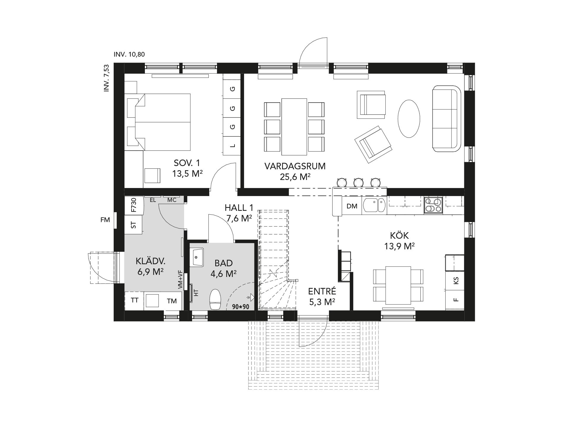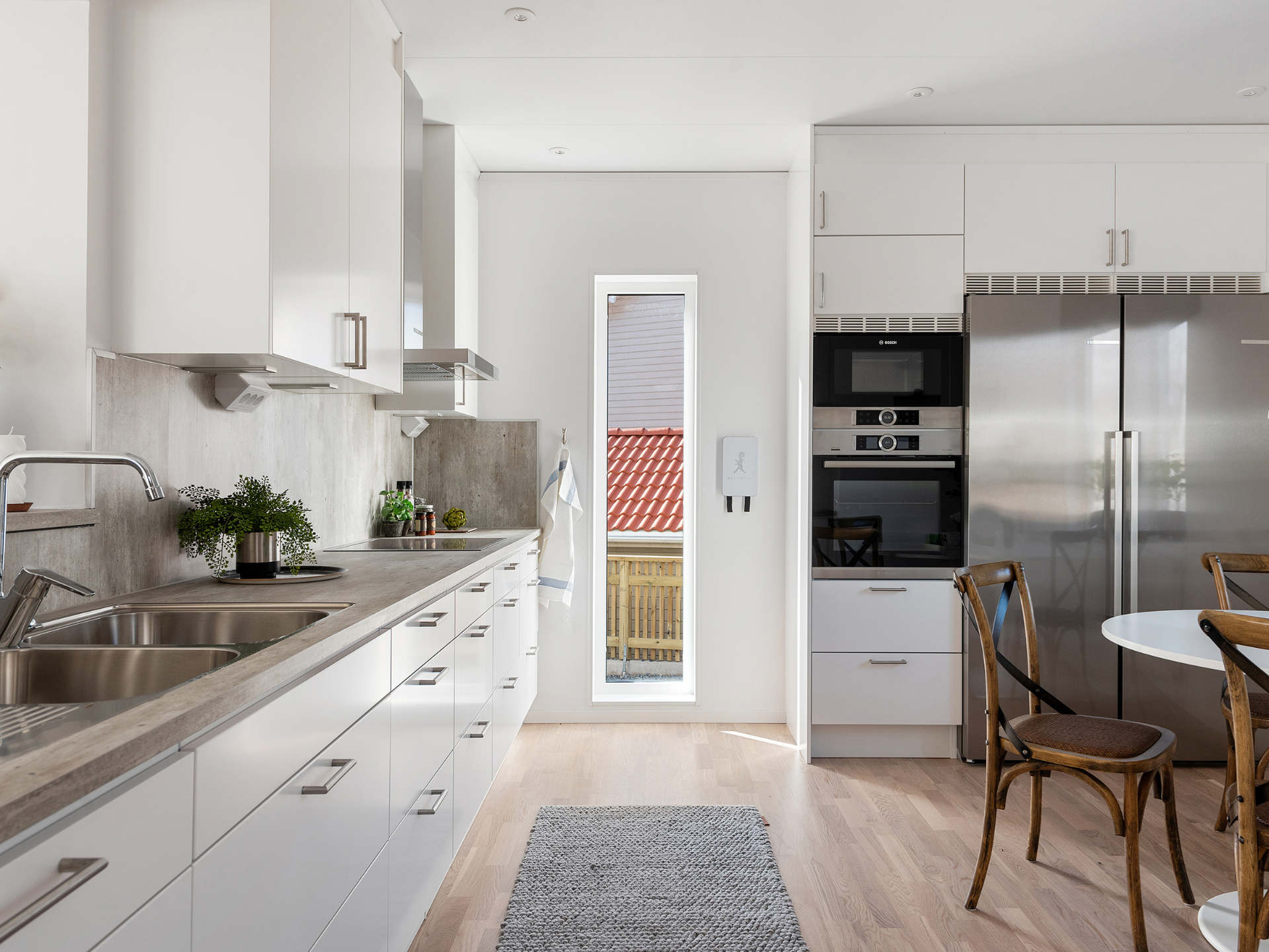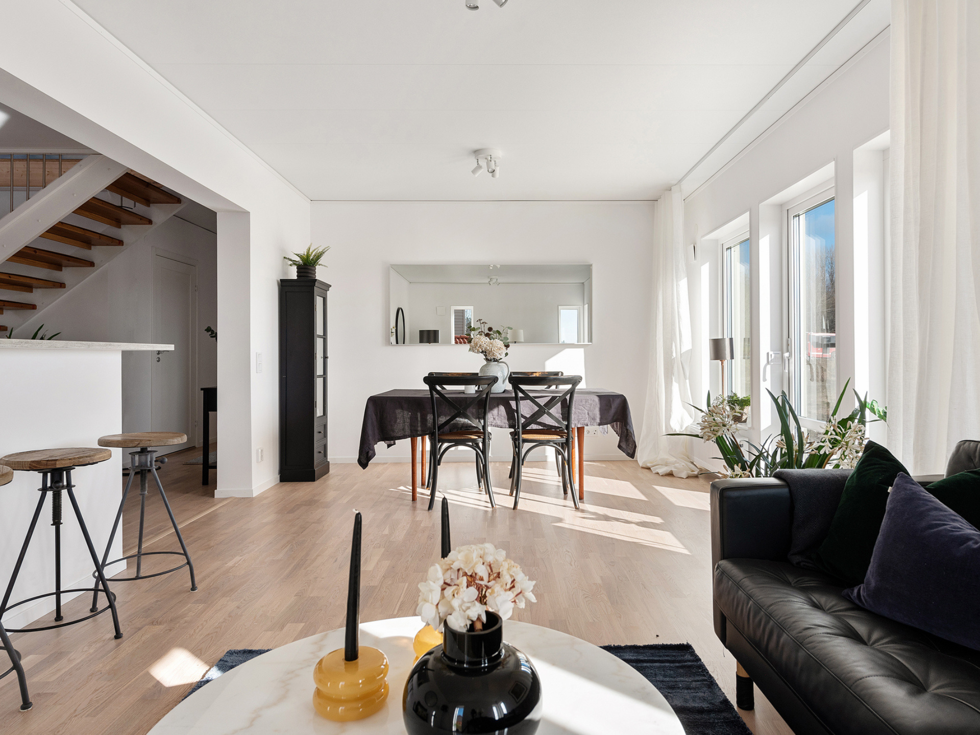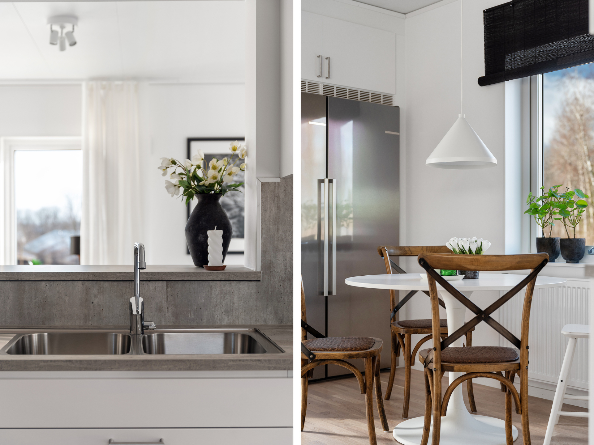 I Villa Markaryd välkomnas du av en enastående umgängesyta, ett stort sovrum och alla praktiska bekvämligheter. Entré, kök och vardagsrum bildar en supersocial yta med en mysig bardisk som den naturliga mötesplatsen. Här levs livet med allt från läxläsning och mästerkockande till minglande middagsgäster.